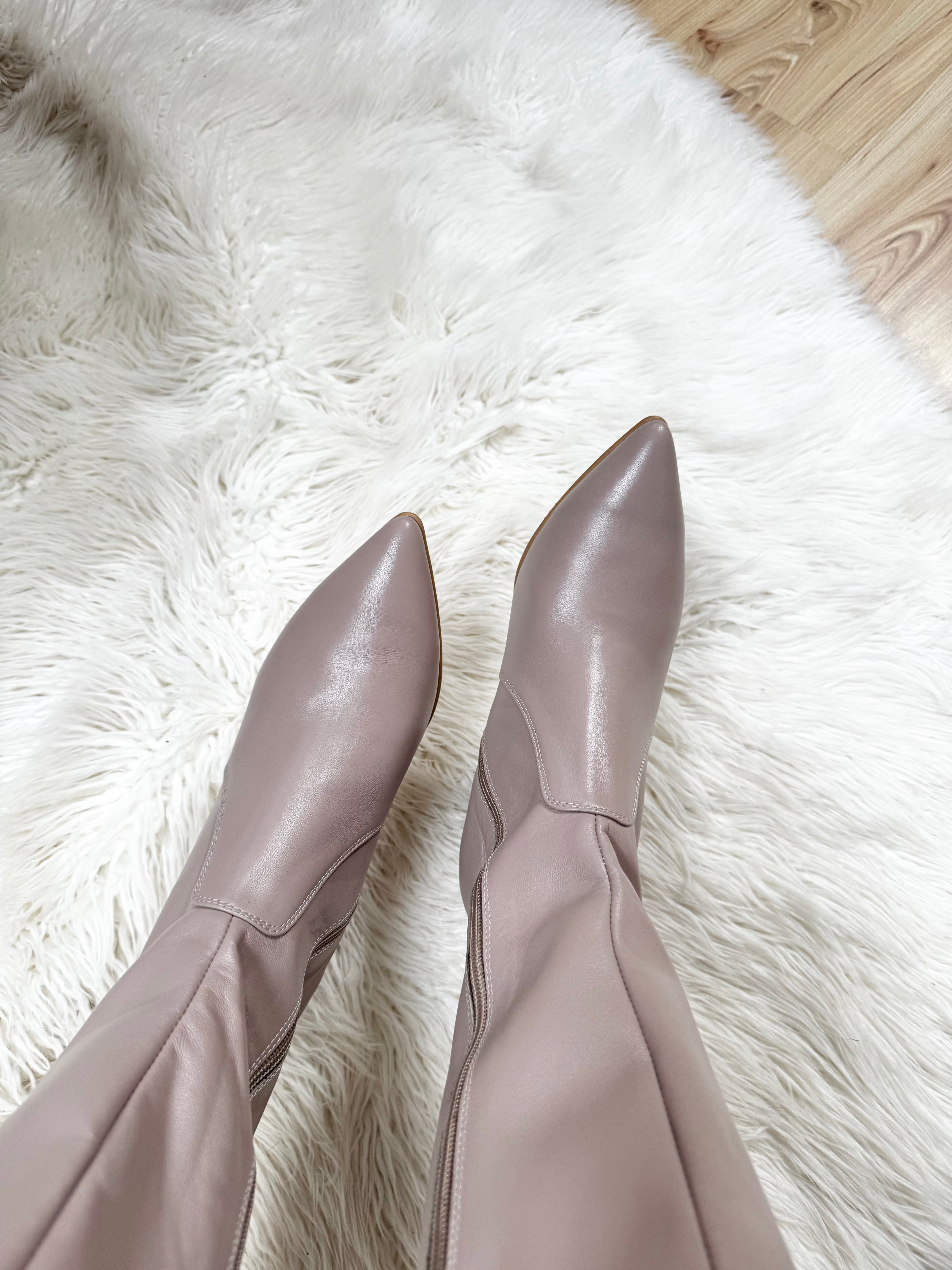 Cizme bej rose, toc de 5 cm, marimea 40