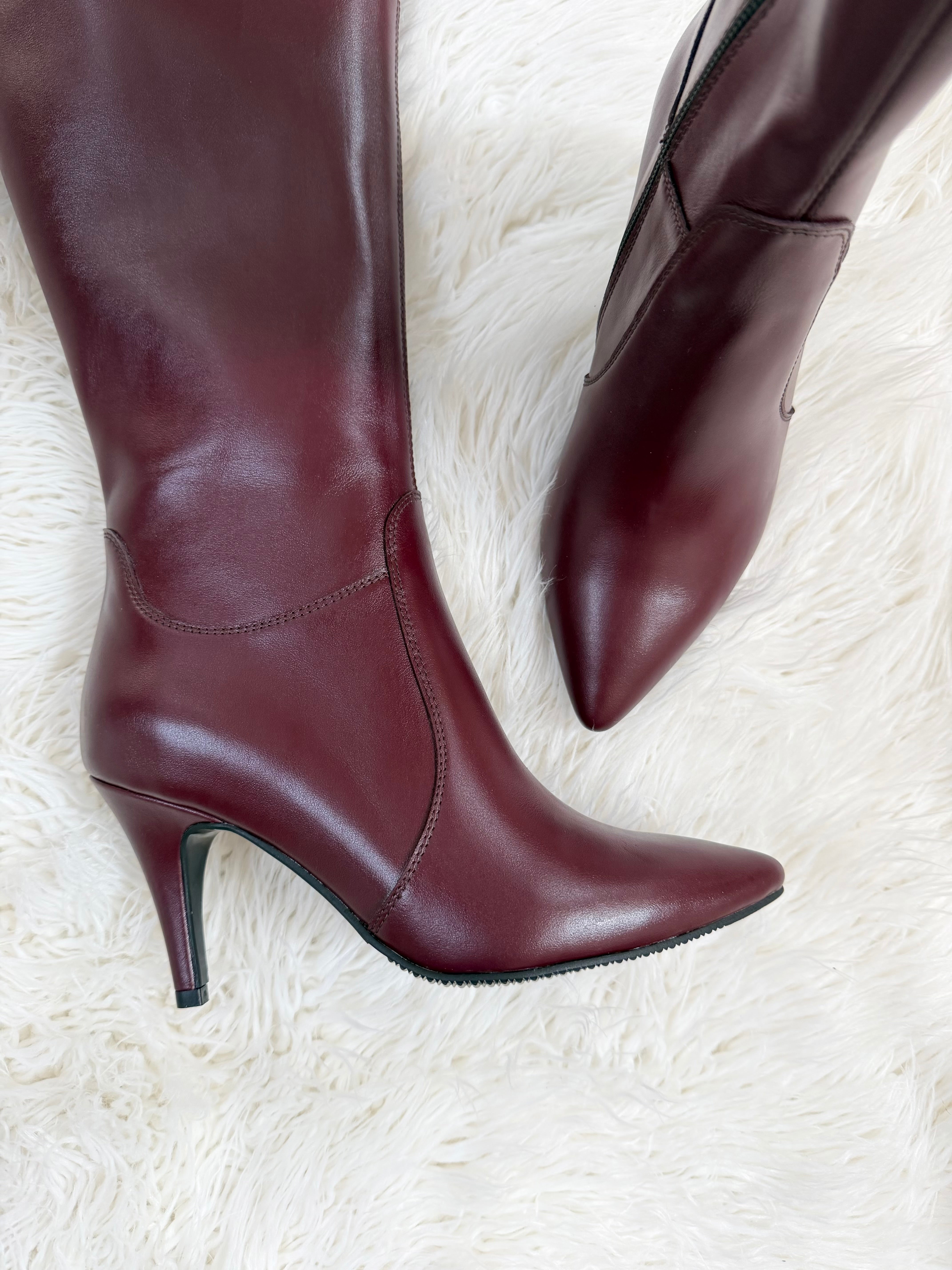 Cizme super elegante si comode cu toc subtire de 8 cm si varf ascutit. Inchiderea se face cu ajutorul fermoarului.