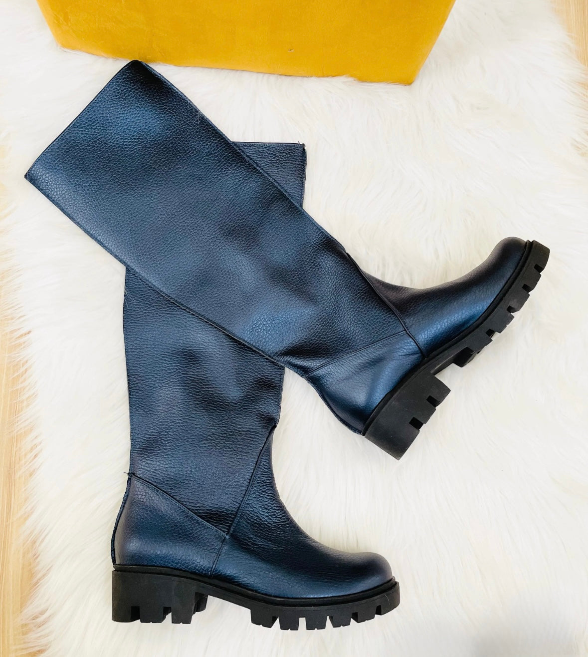 Cizme tip burlan, bleumarin sidefat, marimea 37